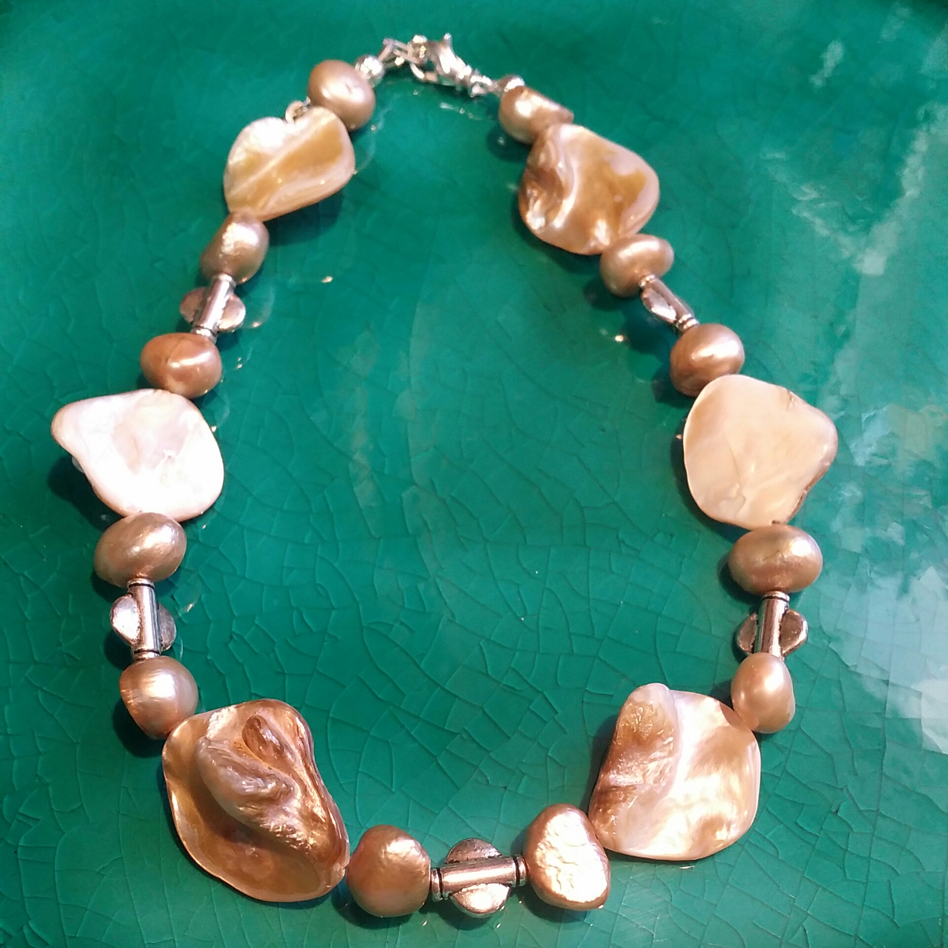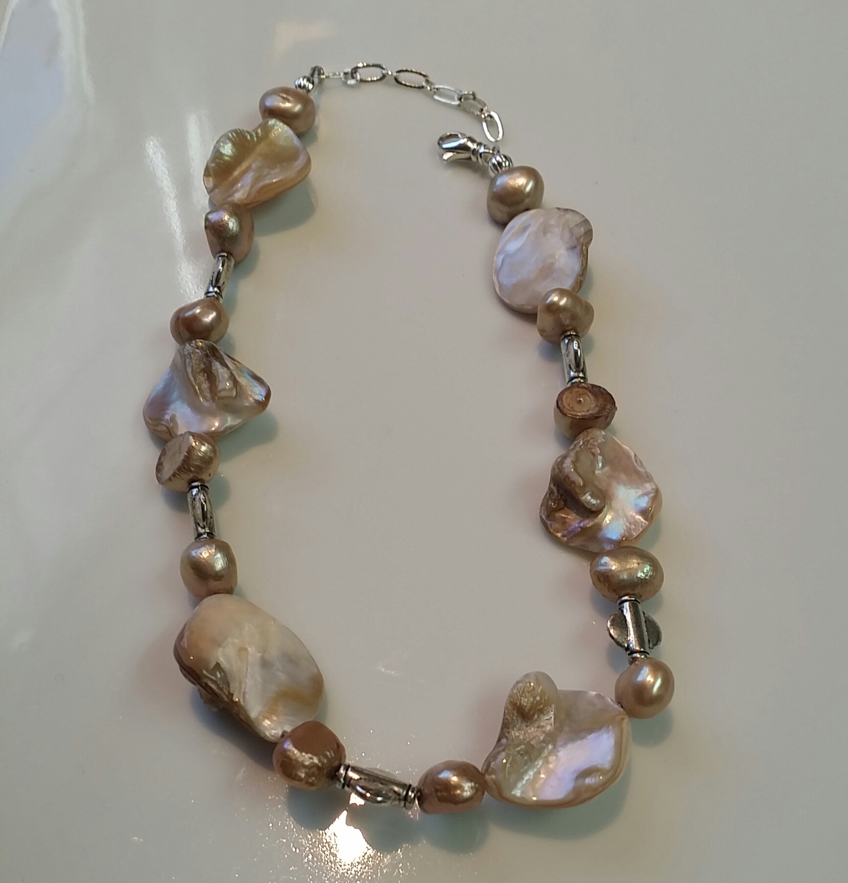 Shell anklet with silver-tone/plated metal beads and extension chain.