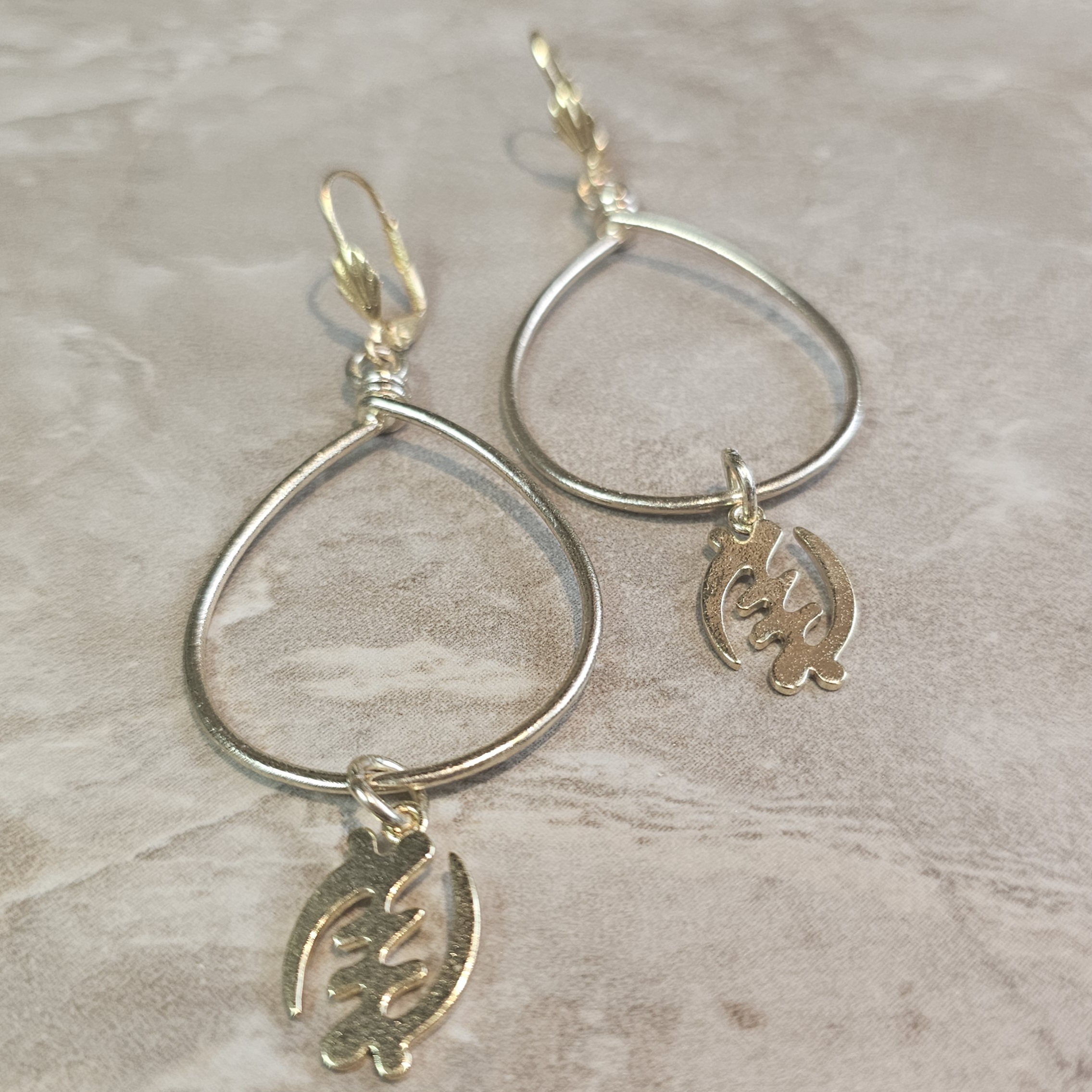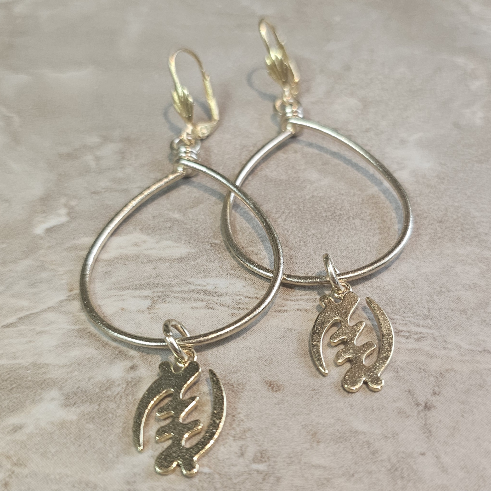 Gold-plated/finished hoops with Adinkra symbol charm dangles.